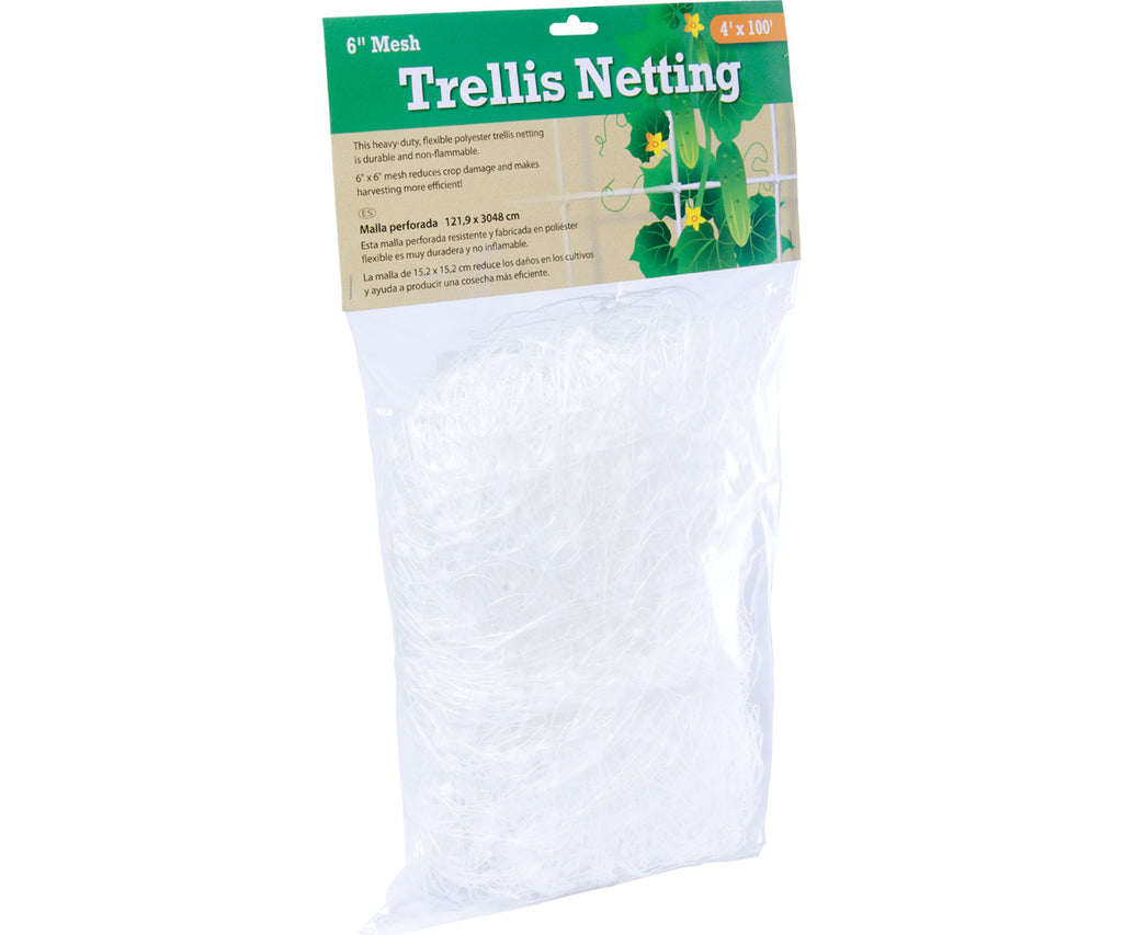Heavy duty, long lasting trellis netting features 6" reach-through mesh that allows the trellis to handle more weight, remain taut, and provide strong support for growing crops.