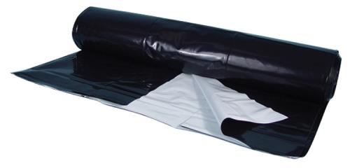 This waterproof poly film is black on the outside and white on the inside. The 5 mil thickness polyethylene film offers excellent protection for heavyweight applications and has outstanding puncture, scuff and scrape resistance. The white surface reflects the light striking it and sends the light back to the plants. The black surface helps block the light from getting to the ground, which keeps the weed growth down and the soil warm. The waterproof, light-proof, washable film also helps prevent algae and mold growth. The film also helps prevent some insects from attacking your plants. Double it up by putting the black surfaces together to economically and effectively partition off indoor gardens. Very versatile film for your indoor or outdoor gardening use.